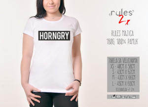 Zenska Rules majica sa natpisom Horngry- Tabela velicina