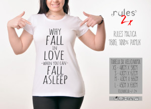 Zenska Rules majica sa natpisom Why Fall In Love When You Can Fall Asleep – Tabela velicina April 10, 2016 by majica No Comments Share: