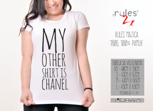 Zenska Rules majica sa natpisom My Other Shirt Is Chanel – Tabela velicina April 10, 2016 by majica No Comments Share: