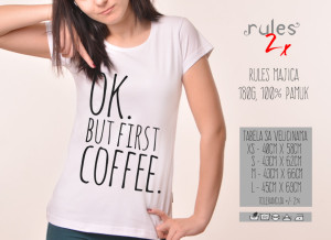 Zenska Rules majica sa natpisom Ok But First Coffee – Tabela velicina April 10, 2016 by majica No Comments Share: