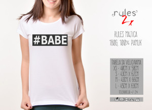 Zenska Rules majica sa natpisom Babe – Tabela velicina