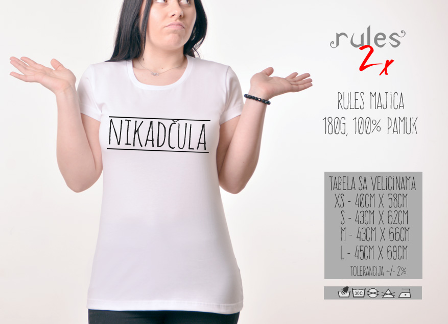 Zenska Rules majica sa natpisom Nikad Cula- Tabela velicina April 5, 2016 by majica No Comments Share: